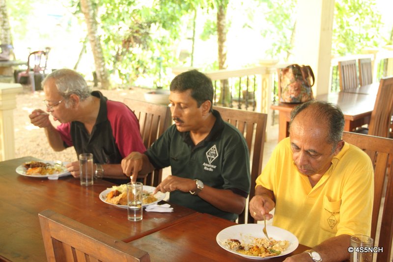 A special dah, dah dit,dah di di dah to Leo 7LF for coming all the way from Bandarawela, Denver 7DA our guest of honour and Nelson of course and 4S7DJ Jayantha, Calvin who needs no intro and the a big “thank you” goes to the XYLs for having come……Srenarath and XYL for giving many a lift, as did Nadika, Christy and Vk to get everyone there to have a great event. The many photos would have caught the mood of the event with some prized catches by Nadika!!