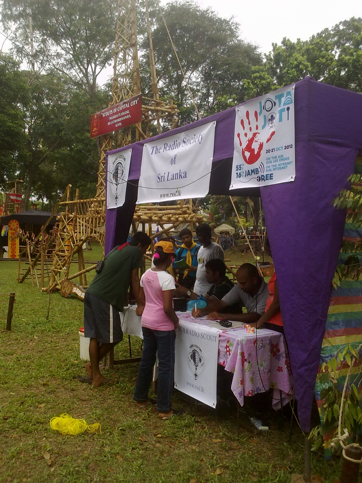 The rssl on a request from Scouts Headquarters is conducted a special event station at a Scout Camporee on 25th – 26th August 2012. 4S7JL Jaliya was assisted by 4S7BU and others.